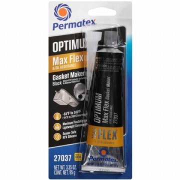 Permatex Optimum Black combines maximum oil resistance with maximum flexibility. Today, we see components changing and unlike materials meeting (plastic/steel, aluminum/steel, etc.), all with different rates of expansion and contraction. In addition, with technology advancing, regulations and requirements tightening, we see thinner metals, fewer fasteners, and wider spread bolt patterns. The strength and flexibility of Optimum Black handles the changes and added stresses that exist between today’s lightweight, high performance, and premium component assemblies. Optimum Black is sensor safe, low odor, and non-corrosive with resistance to oil, shop fluids. It is one of the most advanced, maximum flex, maximum oil resistant RTV silicone gasket makers available.